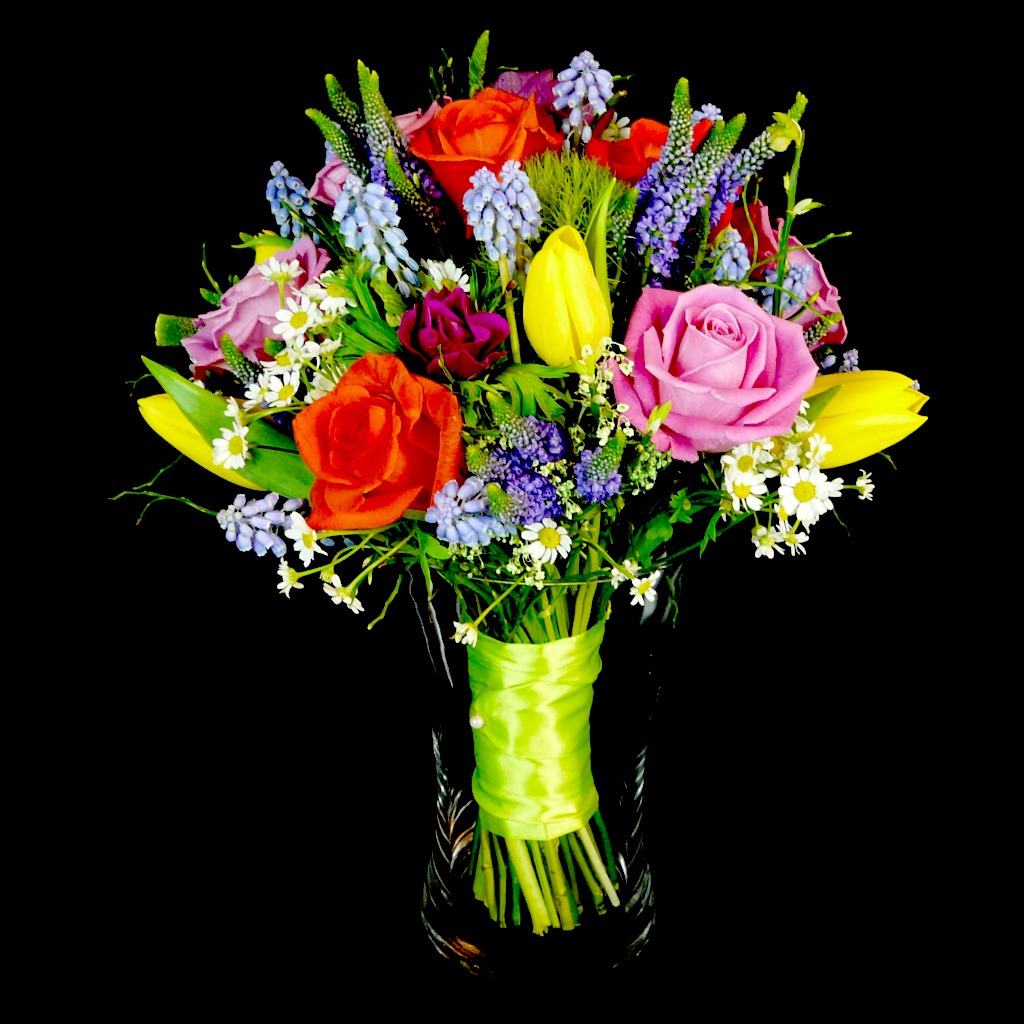 Biedermeier bouquet made of roses, tulips, Chamomilla….